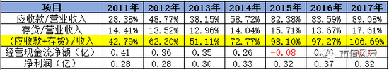 飞鹿股份应收款/营业收入的比例在逐年上升,2017年高达89.08%: