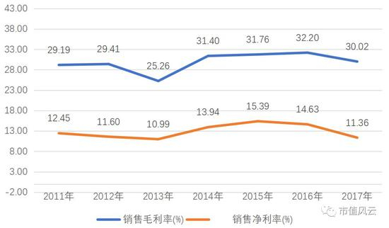 直接材料占比较大的公司一般毛利率都比较低,飞鹿股份毛利率历年在30%左右波动,净利润在12%左右波动。