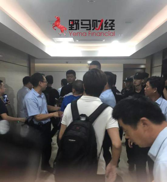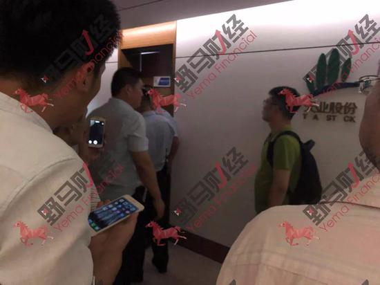 聚集的股东有的直接爆粗口痛骂上市公司,有的则安静地呆在一旁,等待天业股份的高管给一个说法,却在进入会议室前遭到阻拦。