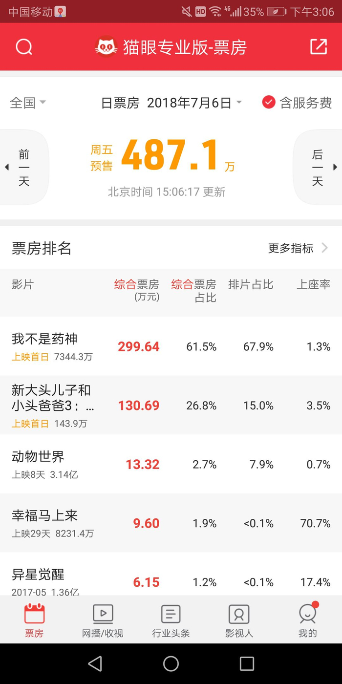 《我不是药神》票房亦有强力的排片保障。罗昊告诉中国证券报记者,目前的是预排片,这个数字(67.9%)还会降,会在周四下午基本上尘埃落定,应该不会低于40%。同档期的片子,大头爸爸偏低幼,受众不相冲。上周遗留影片《动物世界》还会占一定的排片空间,但是已经疲软,所以药神的威力会非常大。