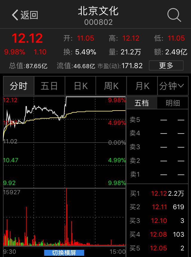 7月3日,参投该片的北京文化股价开盘后小幅攀升,一度上涨7.8%。午后股价继续走高,13:03涨停。