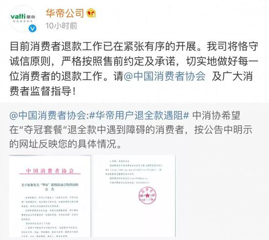 今日凌晨,华帝股份在微博中称,“目前消费者退款工作已在紧张有序的开展。我司将恪守诚信原则,严格按照售前约定及承诺,切实地做好每一位消费者的退款工作。请@中国消费者协会 及广大消费者监督指导!”
