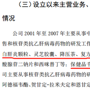 广生堂IPO招股书显示,公司成立于2001年,当时主要从事中成药、化药和保健品的生产销售。具体产品包括中成药茵白肝炎胶囊、灵芝胶囊、降压茶、复方丹参片、副马酸亚铁、减肥茶等,治疗和保健的病症从肝、脾、胃,到贫血、降压、减肥等等,涉及的疾病范围之广可见一斑。