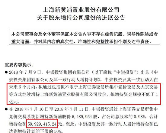 自2017年年底,新黄浦二股东上海盛誉莲花股权投资基金合伙企业(以下简称“盛誉莲花”)与一致行动人中崇投资集团有限公司(下称“中崇投资”)花式增持。7月12日晚间新黄浦公告披露显示,中崇投资斥资近6000万增持,目前持股比例增至21.85%,与大股东新华闻25.06%的持股已相当接近。中崇投资及其一致行动人还将继续增持。