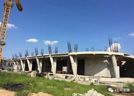 证券时报·e公司记者围绕项目实地探访,中国建筑旗下公司承建的神州百戏剧场工程已经停工,工地大门紧闭,塔吊孤悬空中。站在高处往里看,剧场一楼已经建起,钢筋裸露冲向空中,一只野狗穿过工地。已被晒的有些褪色的围挡上还展示着神州百戏剧场精神,“畅想神州 匠心筑梦 舍我其谁……”