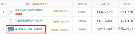 2015年凯乐科技出资3000万入资抱财网经营主体——北京中联创投电子商务有限公司,占股10%。