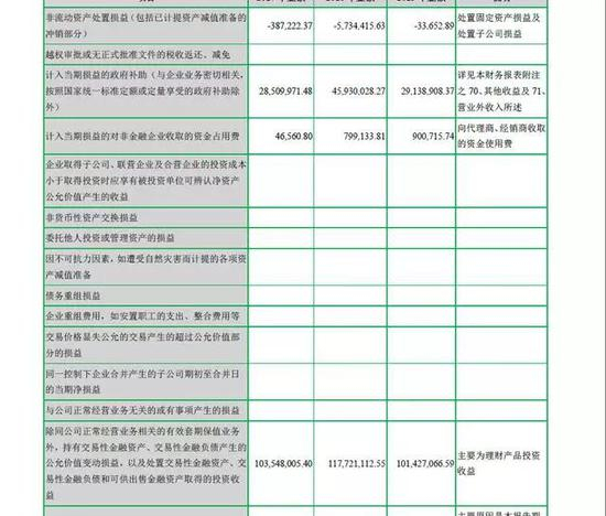 数据显示,2015年到2017年,七匹狼主要因为理财产品贡献的投资收益始终维持在1亿元左右。