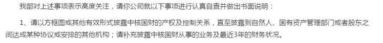 7月13日,公司收到深交所的关注函,要求公司以方框图或其他有效形式披露中核国财的产权及控制关系,直至披露到自然人、国有资产管理部门或者股东之间达成某种协议或安排的其他机构;补充披露中核国财从事的业务及最近3年的财务状况。
