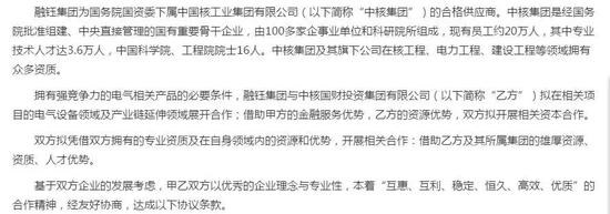 2018年7月12日,公司发布了《关于与中核国财投资集团有限公司签署战略合作协议的公告》,拟引入中核国财投资集团有限公司(下称“中核国财”)作为战略投资方,合作方向包括后者战略入股上市公司,3年内打造总规模50亿-100亿元基金投资平台和央民创新合作平台,并联手开发“一带一路”工程。很快就有媒体挖出中核国财很可能并非央企中国核工业集团有限公司(下称“中核集团”)的下属单位。