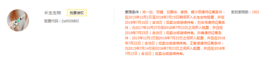 宋一欣、厉健、谢良律师征集条件:在2017年10月27日至2018年7月15日期间买入长生生物股票,并在2018年7月16日(含当日)后卖出或继续持有;刘华浩、刘国华律师征集条件:为2017年10月27日到2018年7月23日之间买入股票,并且在2018年7月23日(含当日)后卖出或继续持有。许峰律师征集条件:2015年12月1日到2018年7月23日之间买入股票,并且在2018年7月23日(含当日)后卖出或继续持有。王智斌律师征集条件:为2015年7月14日到2018年7月23日之间买入股票,并且在2018年7月23日(含当日)后卖出或继续持有。