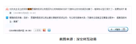 其次,有中小股东在投资者互动易上对于刘光设立深圳前海恩福特投资公司(下称:恩福特)是否和上市公司存在竞争关系?公司给予回复称,恩福特主要从事股权投资业务,未否定和刘光的关系。