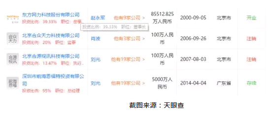 据天眼查数据显示,趣动旅程的第一大股东为深圳市前海恩福特投资有限公司,实控人为刘光。刘光正是A股上市公司东方网力(300367.SZ)董事长兼大股东。