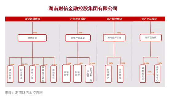 湖南财信金控持有湖南信托100%股权,持有财富证券96.49%的股权,持有吉祥人寿38.26%的股权,持有华融湘江银行20%的股权。湖南财信金控手中握有券商、保险、信托和银行牌照,还缺乏期货和公募基金牌照。通过举牌并增持海欣股份,可以间接参股长信基金,补上公募基金牌照。