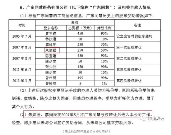 恰巧康芝药业在解释上述媒体报告时说明,朱炳强曾为公司IPO期间第一大客户广州同慧医药有限公司的股东,且其在离开广州同慧后任职于康芝药业。