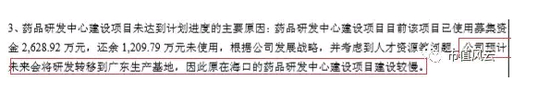 同样的,第三项药品研发药品研发中心建设项目预计达到可使用状态时间由2011年12月31日推迟至2013年12月31日,截止到现在也仅投入预计投资总额的68.48%。