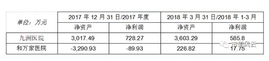 拟收购的两家医院2017年度及2018年1-3月经营数据如下,而评估结果显示,九洲医院评估增值率1160.03%,和万家医院评估增值率8139.40%,最终确定收购对价3.2亿元!