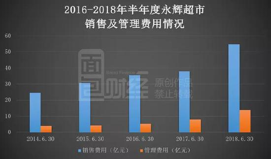 根据财报,2018年中报,永辉超市的销售费用为54.72亿元,与去年同期相比增长了43.97%;而管理费用也从2017年中报的7.9亿元增长至13.9亿元,增长幅度达75.91%。另外,销售费用在营收中的占比由去年同期的13.42%增加至15.91%,管理费用在营收中的占比由去年同期的2.79%增加至4.04%。