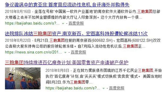三胞集团持有南京新百4.84亿股,占公司总股本的37.48%,持有宏图高科2.48亿股,占公司总股份21.46%,全部都处于冻结状态。北京海淀区人民法院将三胞集团持有的两家上市公司全部股票分别轮候冻结了11次。上海市第一中级人民法院也因中信银行诉三胞集团一案将三胞集团持有的南京新百1.8亿股轮候冻结。