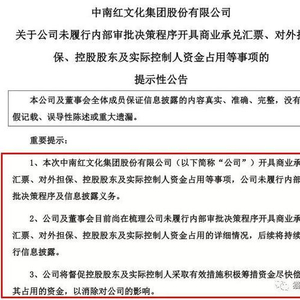 8月27日,中南文化发布公告称,在初步核查中发现,公司开具商业承兑汇票、对外担保、控股股东及实际控制人资金占用等事项,均未履行内部审批决策程序及信息披露义务。