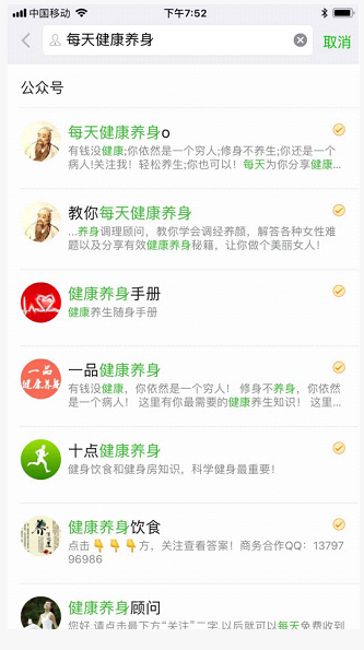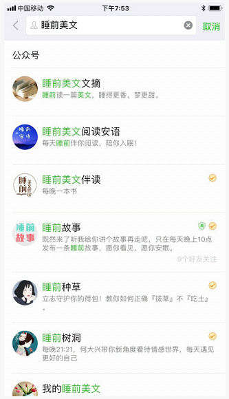 上面6个微信公众号,梧桐君都搜索了一遍,睡前美文、每天健康养身、小果妈咪这3个号都找不到了。。。