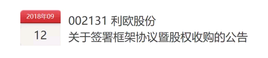 9月12日,利欧股份公告:公司于2018年9月11日签署股权转让框架协议,拟以现金23.4亿元收购宁波妍熙、宁波熙灿、张地雨所持苏州梦嘉传媒有限公司75%的股权。梦嘉传媒在三年对赌期内承诺的归母净利润(以扣非前后孰低为准)分别不低于2.6亿元、3.6亿元、4.5亿元,三年净利润合计不低于10.7亿元。梦嘉传媒预估值31.2亿元正是按照2018年承诺净利润2.6亿元的12倍市盈率确定的。