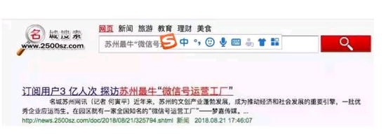 8月21日,苏州市广播电视总台旗下网站名城苏州网对其进行过专访报道,报道标题为《订阅用户3 亿人次 探访苏州最牛“微信号运营工厂”》。