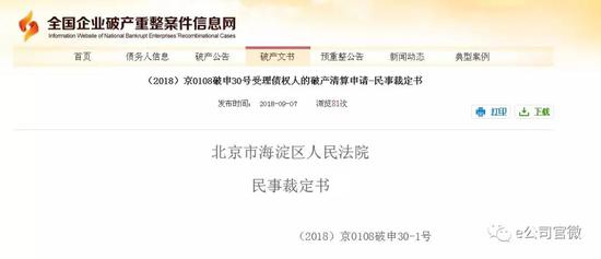 公告称,9月10日,亚太实业从全国企业破产重整案件信息网获悉:北京市海淀区人民法院于9月4日作出裁定:“受理北京北方银通房地产开发有限公司(下称银通公司)、北京环球世纪投资管理有限公司(下称环球公司)、北京益明投资管理有限公司(下称益民公司)对北京大市投资有限公司(下称大市公司)的破产清算申请,本裁定自即日起生效。”