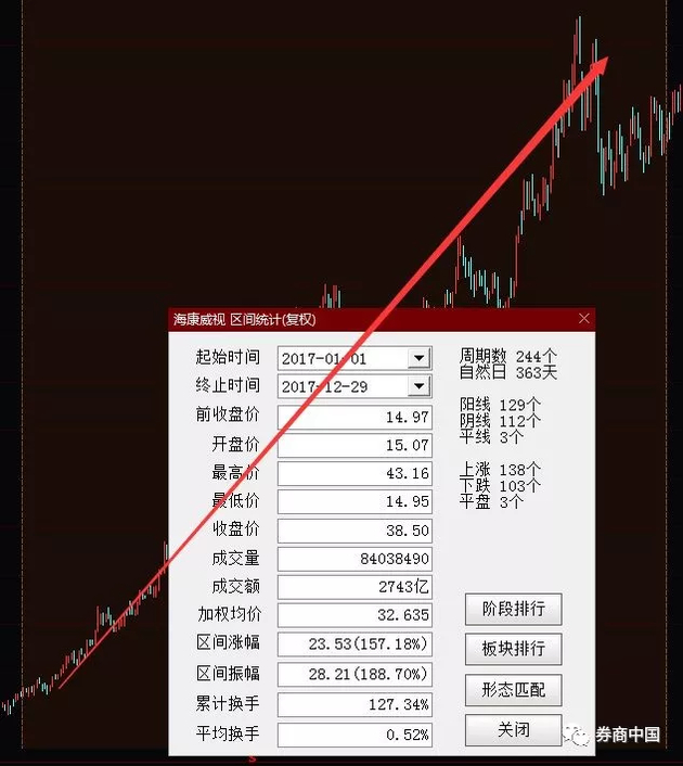 2017年对于海康威视来说,是一段蜜月期。数据显示,海康威视2017年涨幅高达157.18%,区间振幅达188.7%。