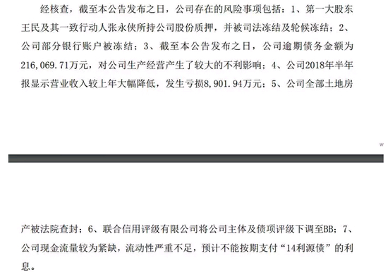 此前,公司于7月28日公告称,截至目前,公司第一大股东王民及其一致行动人张永侠所持公司全部股份已被司法冻结和轮候冻结。两人合计持股27038.1万股、占总股本22.26%。