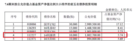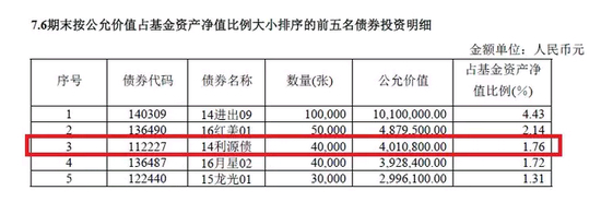 Wind数据显示,截至2018年6月30日,有2只基金持有14利源债,均为同一家基金公司。其中一只债券基金持有14利源债占净值比例近6%,为100多万元。