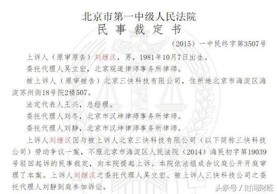 2014年开始,先是向法院提起股权诉讼,但法院以“属于劳动争议”未受理,建议仲裁。但劳动仲裁机构以不属于受理范围为由而作出不予受理的决定。刘继汉再以劳动争议将美团运营主体北京三快科技有限公司(下称三快公司)诉之法院,这次开庭审理,但法院认为一审认为,授予期权的是美团公司,而非劳动合同的签署主体三快公司,裁定驳回。