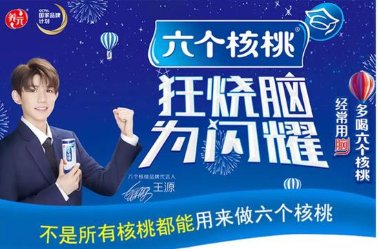 “经常用脑,多喝六个核桃!”在当红小鲜肉王源的倾力代言之下,这句广告语可以说是风靡大江南北。