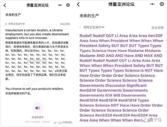 还有给出一堆乱码的情况,好好的同传,突然成了“结巴”。