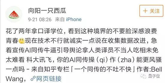 还有人觉得,自己辛辛苦苦学了那么多年的同传,被一个冒充的机器耀武扬威,非常心寒: