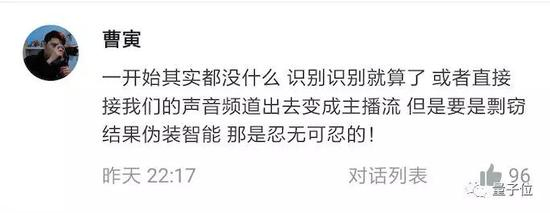 愤怒的Bell同学忍不了了,决定录下来揭发讯飞。由于视频直播有延迟,他完整的录下了女搭档和知领直播中的那个机器人的声音。
