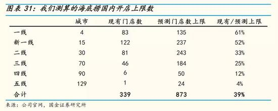 按照国金证券的测算,海底捞在国内餐厅布局的理论最大数是873家,海外市场的门店数量上限是136家。