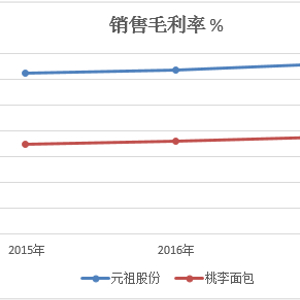 元祖股份与桃李面包近三年毛利率比较