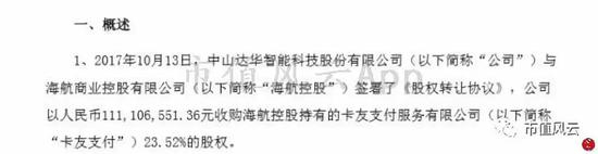 2018年4月14日,在达华智能发布拟出售卡友100%股权公告3个月后,才补充披露其曾在去年10月13日收购过卡友另外的23%的股权。风云君对上市公司信披的及时性表示非常的惊讶。