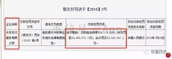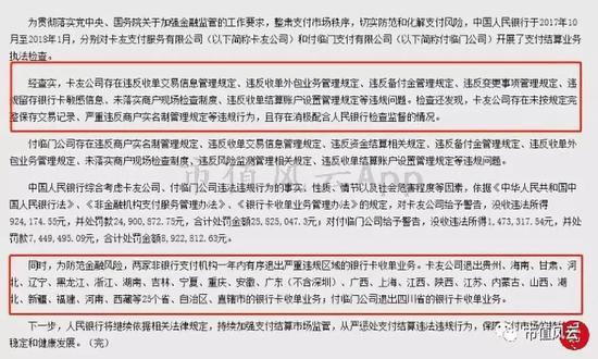 (2)2018年7月30日,央行官网消息称,综合卡友支付有限公司的违规行为将对卡友支付处罚2582万元,并责令其退出包括上海、广东(不含深圳)在内的25个省、自治区、直辖市银行卡收单业务。