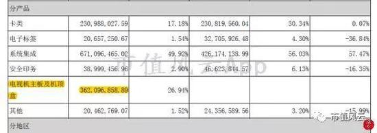 电视机主板业务的营收贡献全部来自金锐显的股权收购,金锐显当年实现营业收入3.63亿,分别贡献营业利润和净利润为2674万和2403万,利润率大约在7%左右。