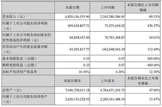 公司2018年上半年公司实现营业收入48.20亿元,较上年同期增长89.53%。实现归属于上市公司股东的净利润4.1亿元,较上年同期增长476.37%。