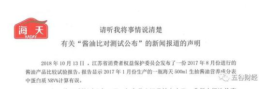 “海天产品的品质检测没有问题,但为什么还是被点名了,我们来把这件事情讲清楚。”海天味业方面在声明中称。