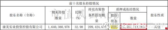 此外,2018年一季度显示,康美药业第一大股东康美实业投资控股有限公司股权质押比例为94.96%。