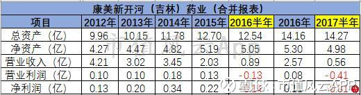 康美药业披露了康美新开河(吉林)药业有限公司合并报表历年财务数据,比较奇怪的是,2017年中报康美药业还披露康美新开河(吉林)药业有限公司的财务数据,2017年就没有再披露了。