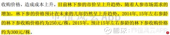 同时,披露了2014年林下参的采购价格为250元/株,2015年预计采购价格为300元/株。