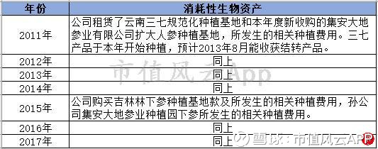 2017年康美药业消耗性生物资产有32.54亿,主要是公司购买吉林林下参种植基地款及所发生的相关种植费用,子公司集安大地参业种植园下参所发生的相关种植费用。这意味着,所有涉及人参的相关费用都可以往里面放:包括购买土地、购买参苗、维护抚育、种植收割、银行利息等费用。