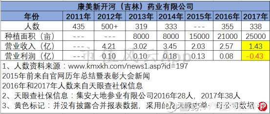 虽然康美药业人参种植的管理模式为“公司+农户”,但随着种植面积越来越大,公司人数和营业收入反而降低,这似乎有悖商业逻辑。工商信息比公司披露的种植面积信息更可靠,那么账上32.54亿存货的真实性存疑。