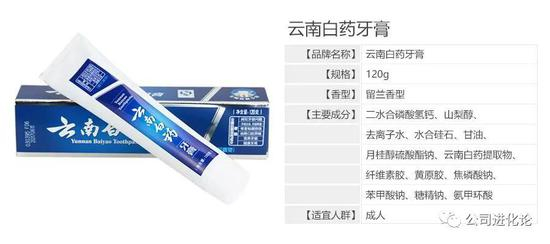 而在多数人记忆中,云南白药为知名中药品牌,而云南白药牙膏也以中药成分为主要卖点。记者发现,此前,云南白药牙膏曾被某地工商部门认为涉及“虚假或者误导式的宣传”。