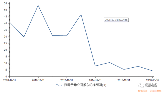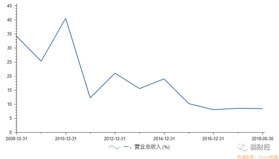 2008年至2018年上半年,云南白药十年来的营收和净利润增速整体呈下降趋势。预示着高增长时代已经过去。