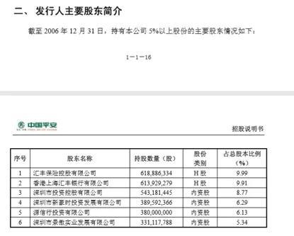 2006年中国平安披露的招股说明书上的股权结构